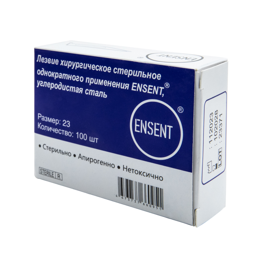 Лезвие хирургическое стерильное одноразовое ENSENT углеродистая сталь №23