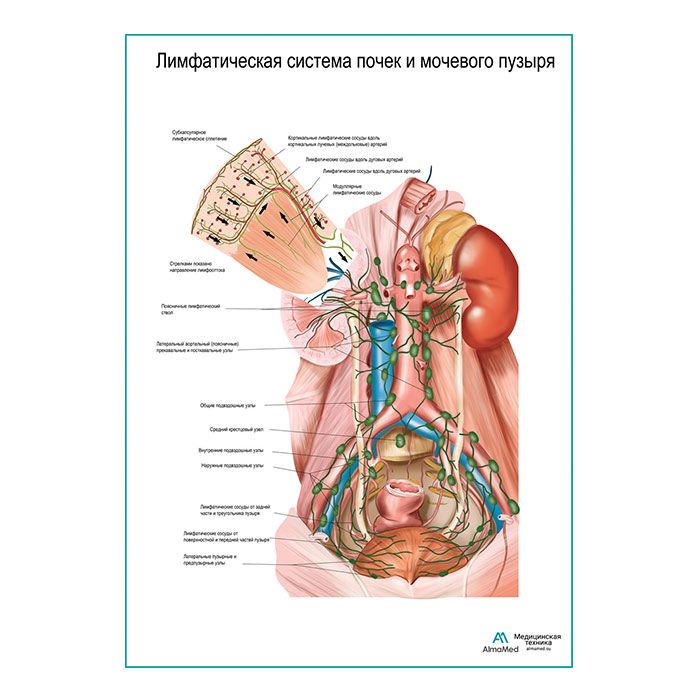 Лимфатическая система почек и мочевого пузыря плакат глянцевый А1/А2
