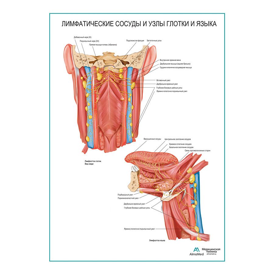 Лимфатические сосуды и узлы глотки и языка плакат глянцевый А1/А2