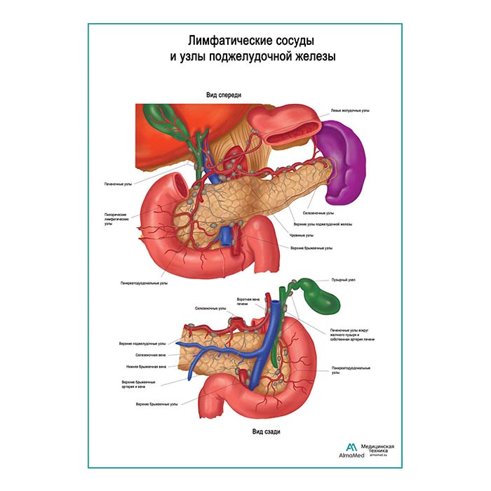 Лимфатические сосуды и узлы поджелудочной железы плакат глянцевый А1/А2