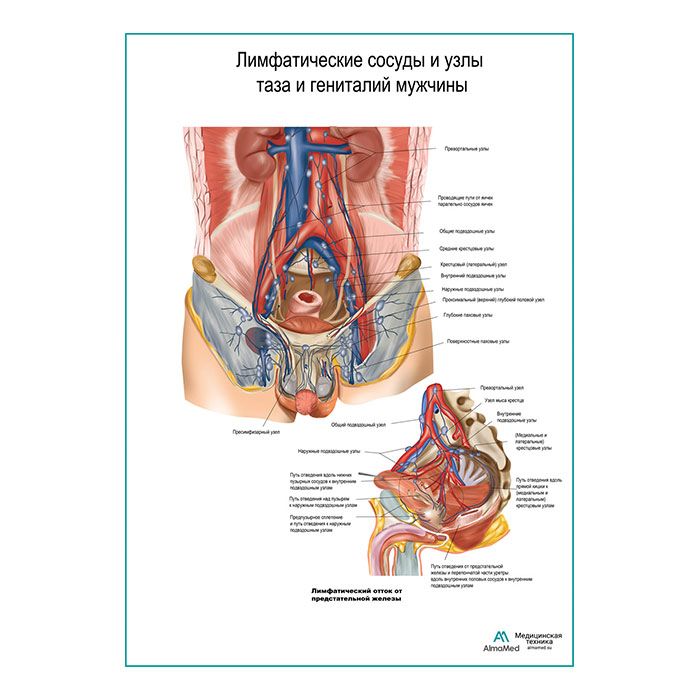 Лимфатические сосуды и узлы таза и гениталий мужчины плакат глянцевый А1/А2