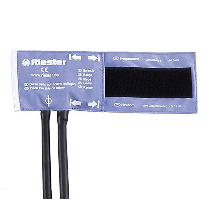 Манжета неонатальная на липучке, для обхвата 5х7,5 см, размер 15,5х5 см, 2 шланга, голубая, Riester