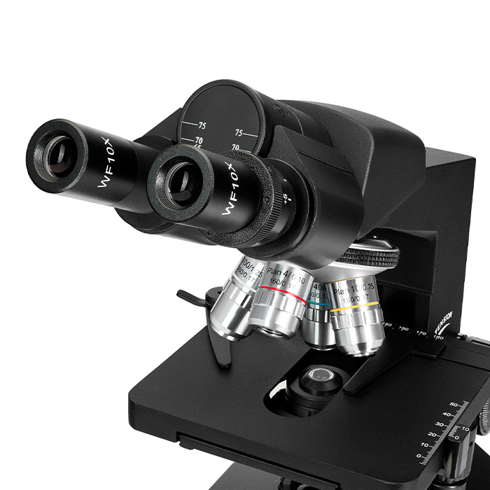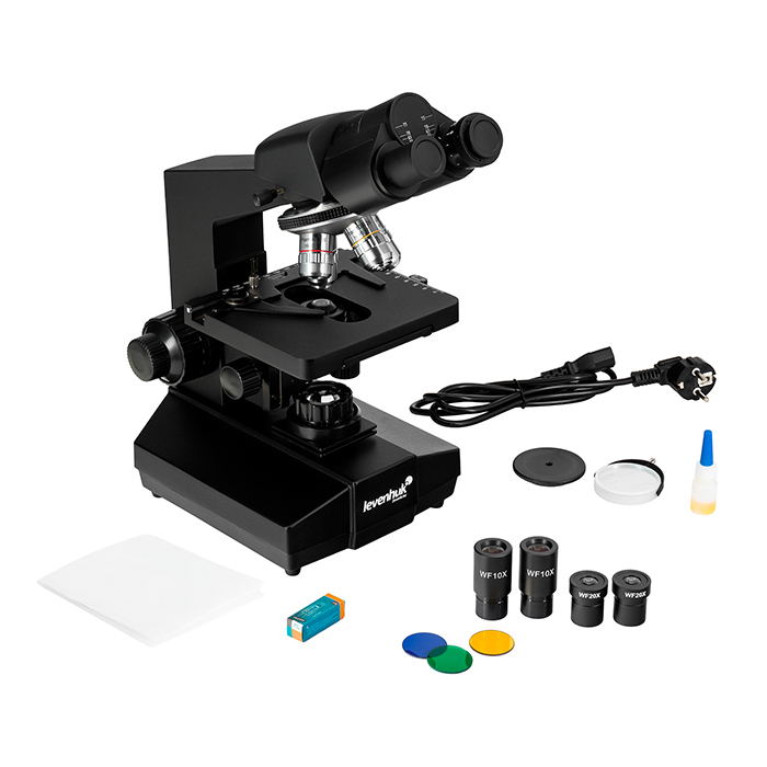Стандартная комплектация товара: Стойка микроскопа с основанием, револьвером объективов, конденсорным устройством, предметным столиком, осветителем проходящего света и источником питания Бинокулярная визуальная насадка. Планахроматические объективы: 4x, 10x, 40xs, 100xs (масляный). Окуляры: WF10х (2 шт.), WF20х (2 шт.). Светофильтры: синий, зеленый, желтый. Флакон с иммерсионным маслом. Зеркало. Запасная галогенная лампочка. Сетевой адаптер. Пылезащитный чехол. Инструкция по эксплуатации и гарантийный талон. Комплектация приборов может изменяться заводом-изготовителем, уточняйте у менеджера.