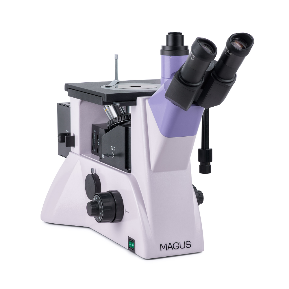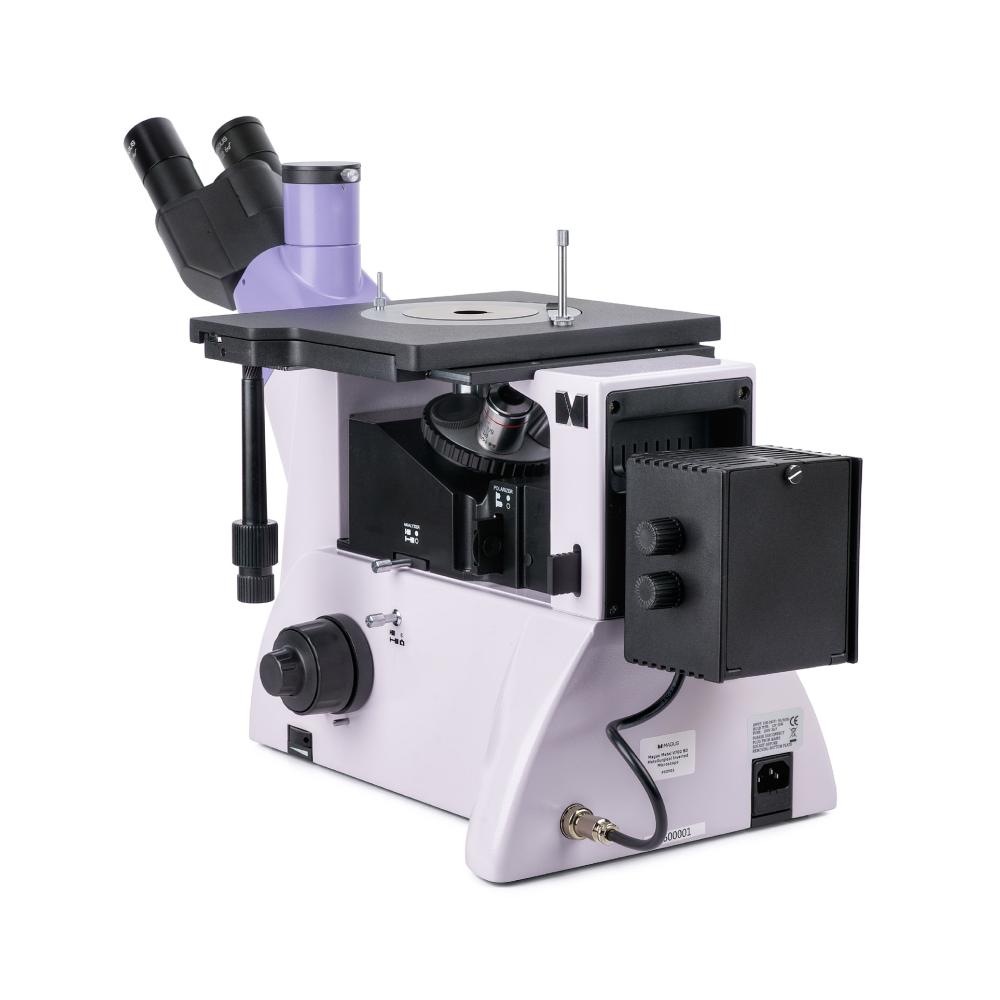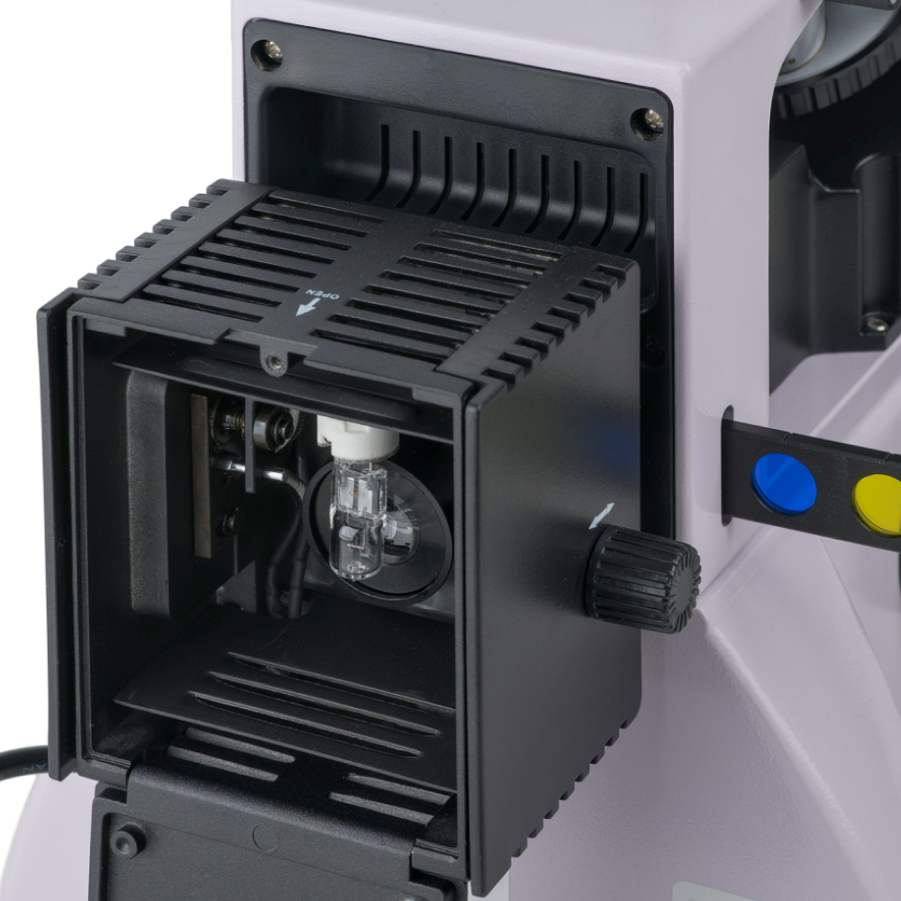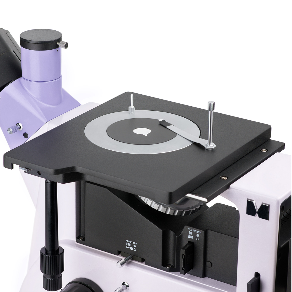 Штатив со встроенным источником электропитания, механизмом фокусировки, предметным столиком и револьверным устройством крепления объективов