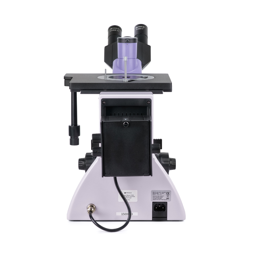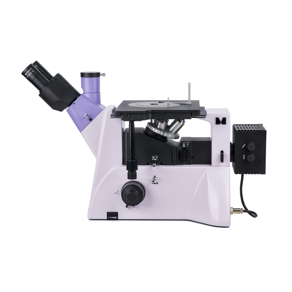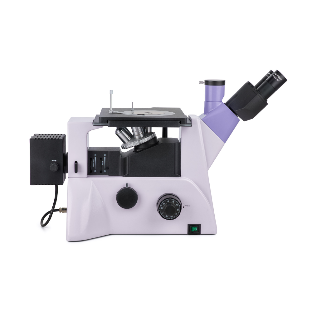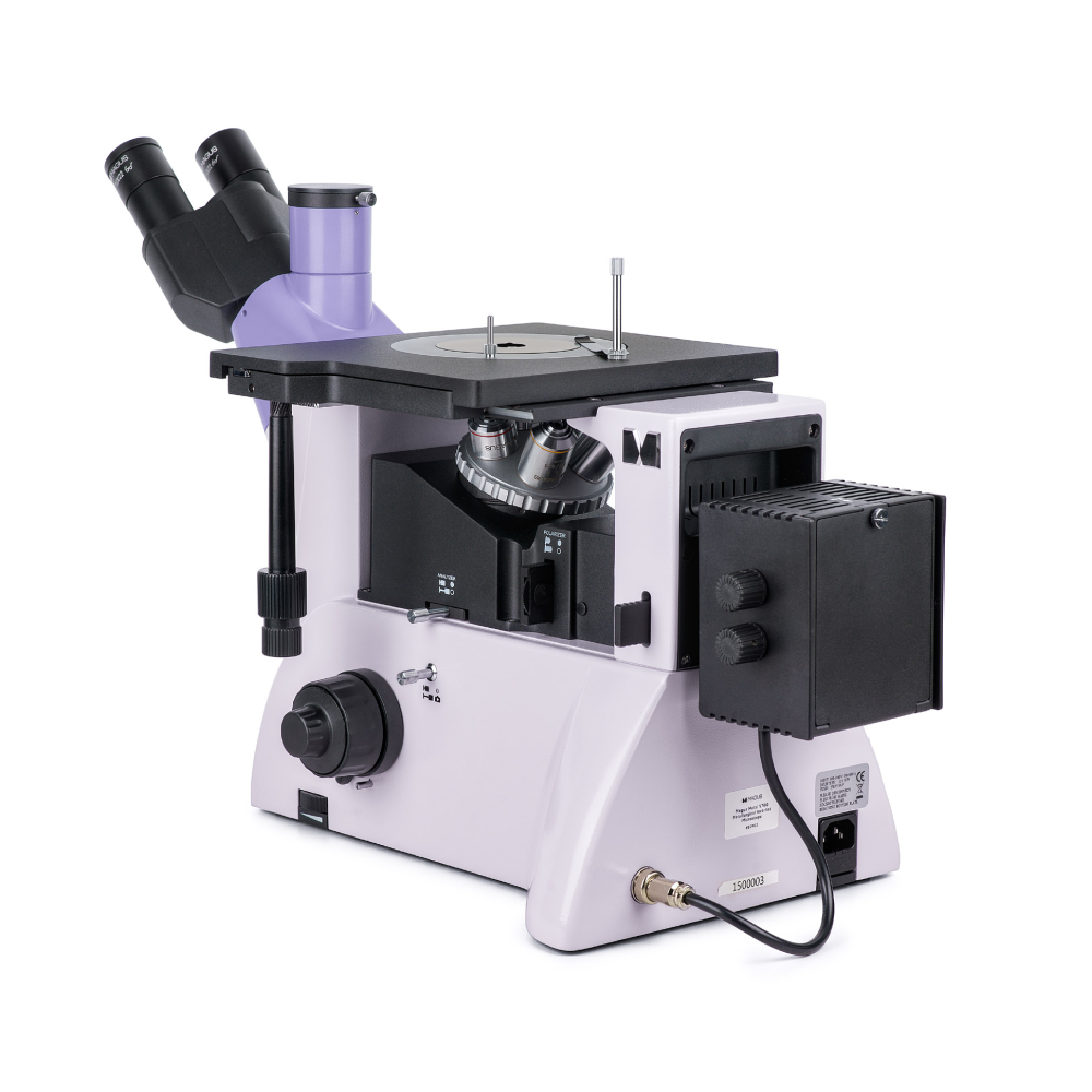 Штатив со встроенным источником электропитания, механизмом фокусировки, предметным столиком и револьверным устройством крепления объективов