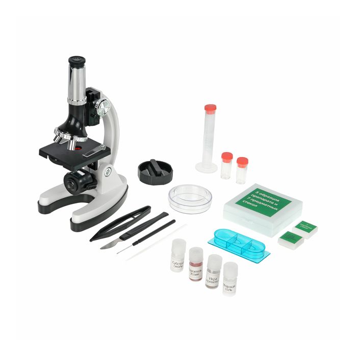 Комплектация микроскопа: Скальпель Игла Мешалка Цилиндр с делениями Пробирки для сбора Щипцы Покровные стекла - 7 шт, чистые стикеры - 7 шт. Запасная лампа Чистые предметные стекла Нож для резки препаратов Чашка Петри Субстрат смолы Краситель эозин Морская соль Икра креветок (артемии) Инкубатор для артемий Покровные стекла (под коробкой с предметными стеклами) Комплектация приборов может изменяться заводом-изготовителем, уточняйте у менеджера.