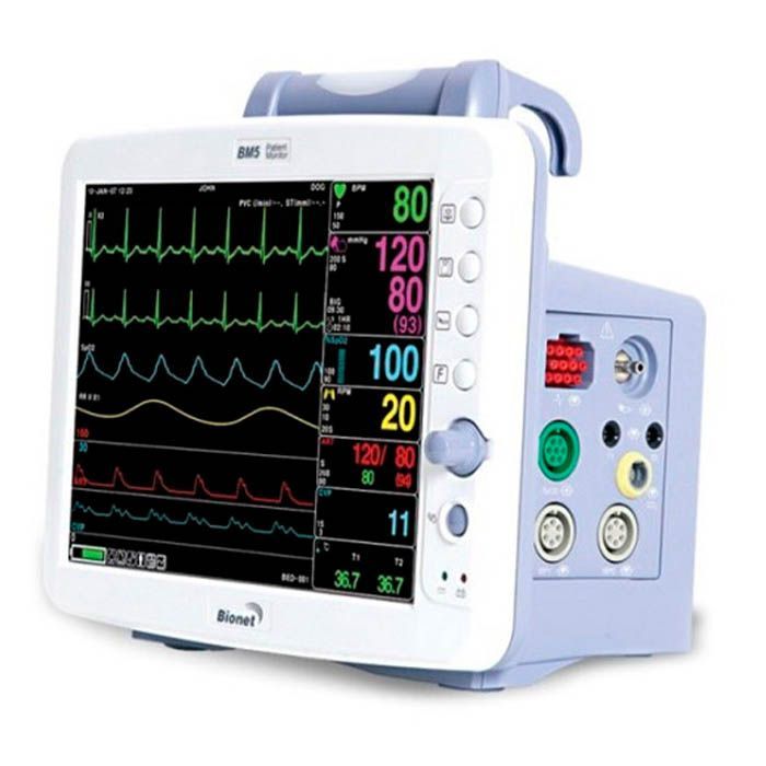 6 отведений: ЭКГ (2), SpO2 (пульсоксиметрия), частота дыхания или EtСО2 (опционально), артериальное давление (2 датчика для определения инвазивным методом)