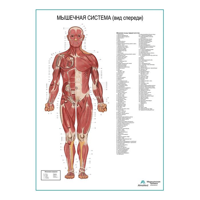 Мышечная система человека, вид спереди. Плакат глянцевый А1/А2