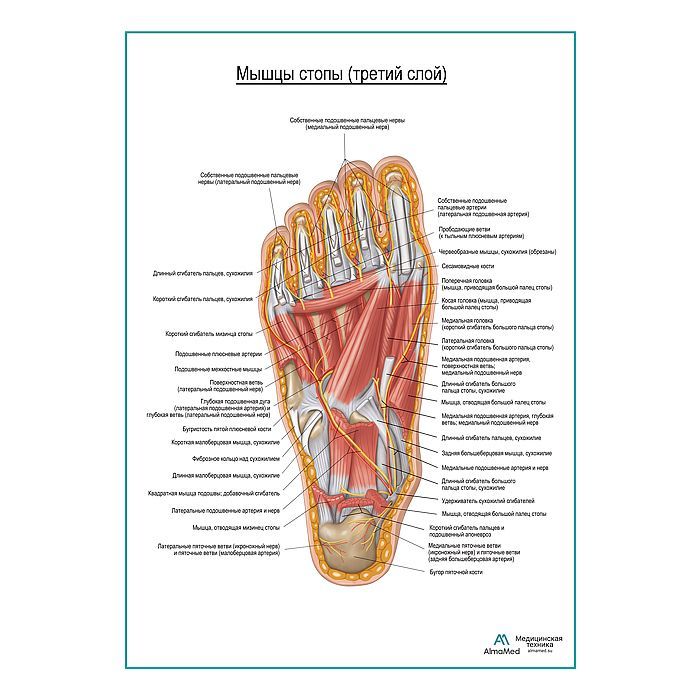 Мышцы подошвенной поверхности стопы (третий слой) плакат глянцевый А1+/А2+