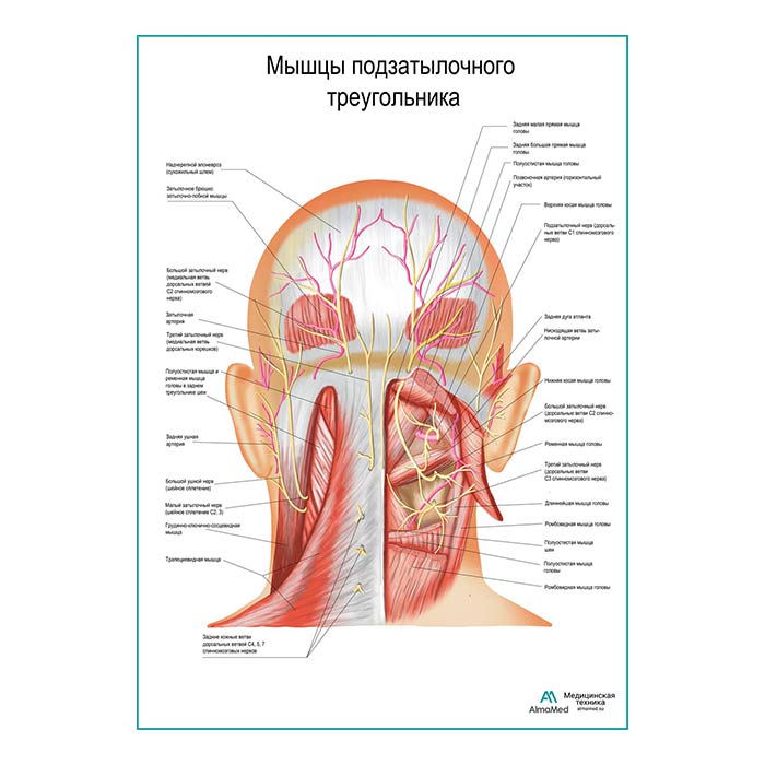 Мышцы подзатылочного треугольника плакат глянцевый А1/А2