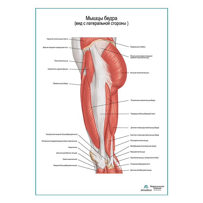 Мышцы бедра вид сбоку плакат глянцевый А1+/А2+