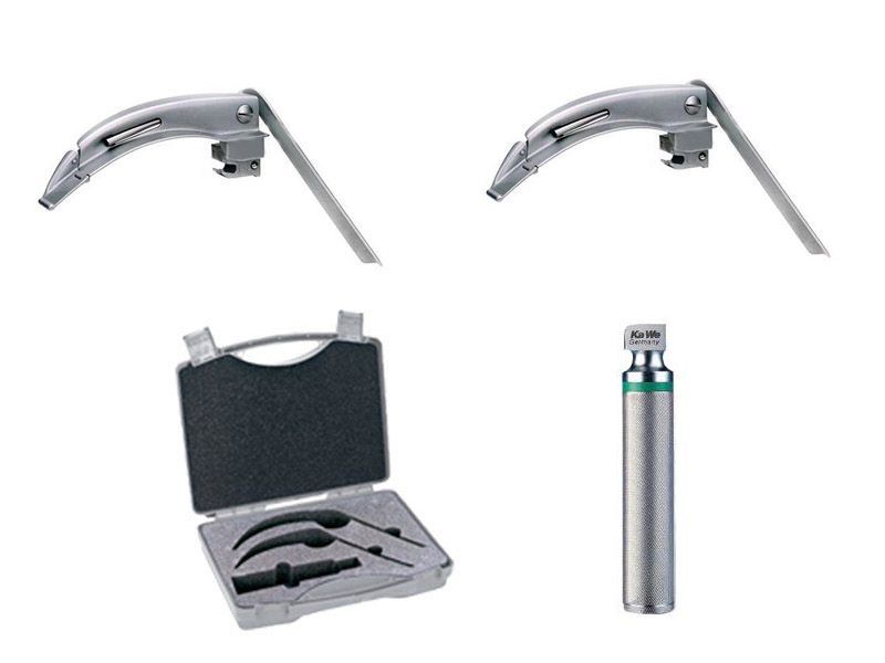 Ларингоскоп в наборе 2 клинка для взрослых (для проведения затрудненной интубации) (на батарейках, лампочка ксенон)