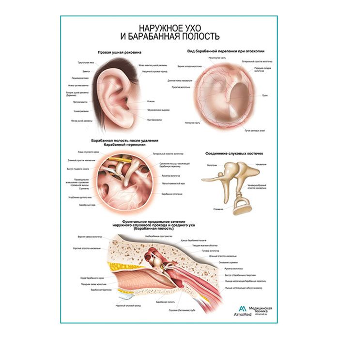 Наружное ухо и барабанная полость плакат глянцевый А1/А2