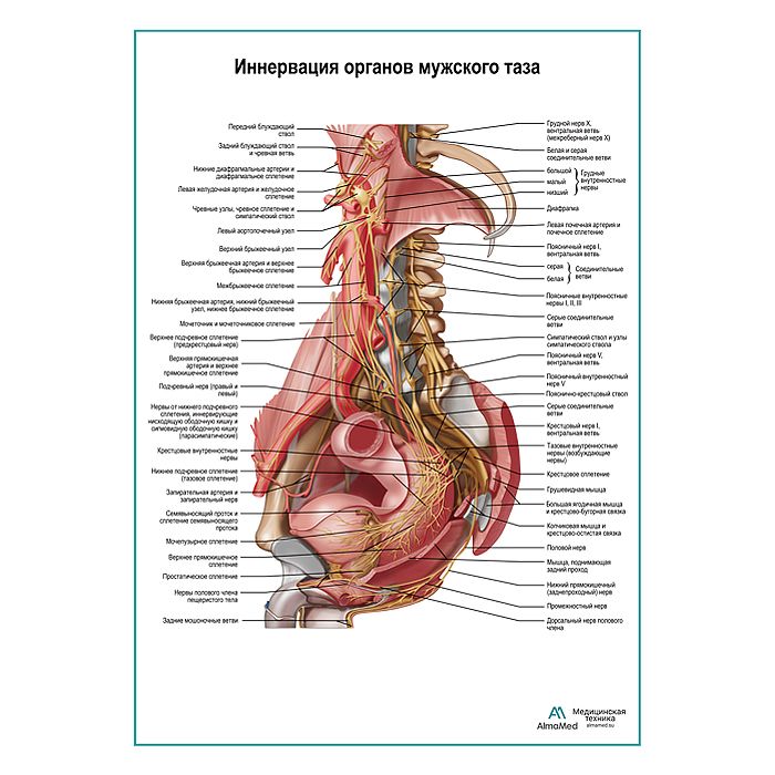 Нервы брюшной полости и таза мужчины плакат глянцевый А1+/А2+