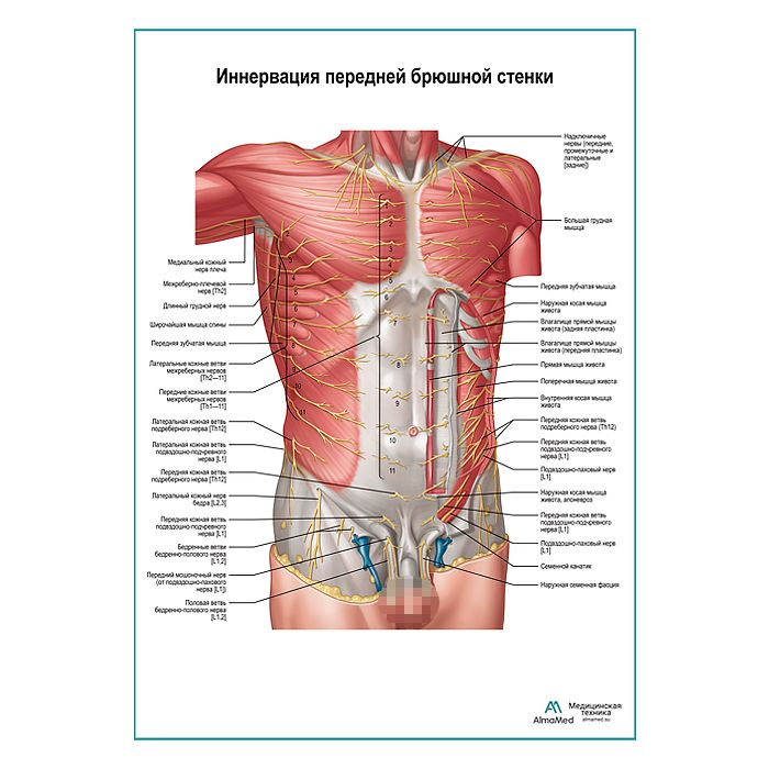 Нервы передней брюшной стенки плакат глянцевый А1+/А2+