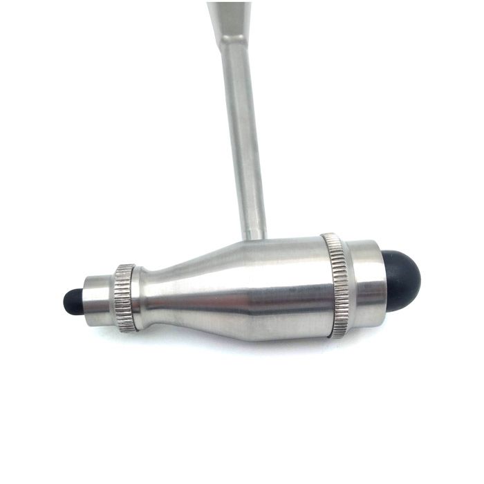 Неврологический молоточек Troemner 5046 Riester сконструирован для обследования пациентов. Врач-невролог с помощью данного изделия определяет сухожильные рефлексы. Инструмент изготовлен в Германии из нержавеющей стали. Утяжелен по сравнению с классическими вариантами молоточков. Вес 230 г. Легко обрабатывается дезинфицирующими средствами. Большая и маленькая резинки головки состоят из высококачественного материала, стойкого к износу. Молоточек имеет регистрационное удостоверение.