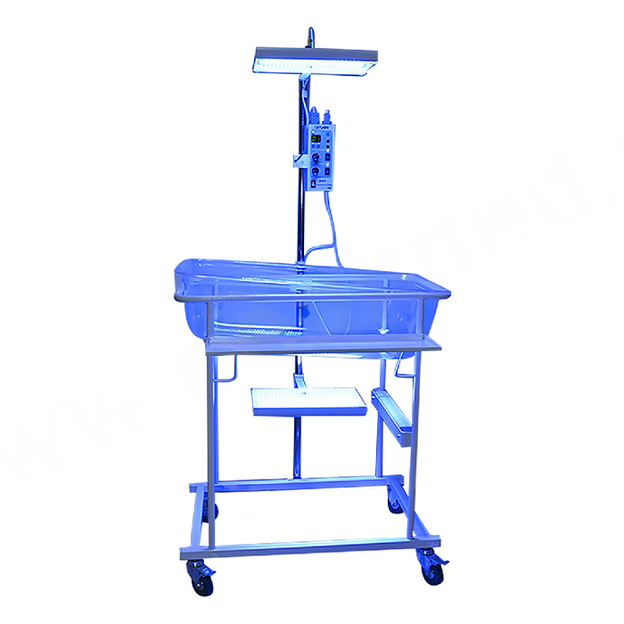 Тележка для новорожденных с прозрачным пластиковым кувезом и стойкой крепления матриц светодиодных