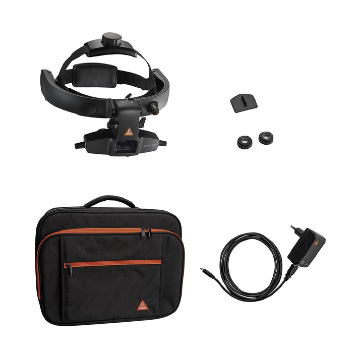 Стандартная комплектация офтальмоскопа: Офтальмоскоп – 1шт, Руководство по эксплуатации – 1шт, Шлем – 1шт, Аккумулятор – 1шт, Окуляр 0D – 2шт, Окуляр +2D – 2шт (встроенные), Адаптер сетевой – 1шт, Кабель – 1шт, Кейс – 1шт * Комплектация приборов может изменяться заводом-изготовителем, уточняйте у менеджера.