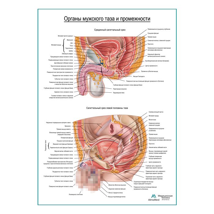 Органы мужского таза и промежности плакат глянцевый А1+/А2+