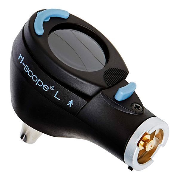 Ri-scope – портативное карманное устройство с ярким освещением, используемое для проверки состояния уха, носа, полости рта. Оснащен фиброоптическими галогеновыми лампами либо светодиодным источником света, также реостатом, используемым для регулирования освещения. Имеет поворотную лупу, увеличивающую изображение в 3 раза. Крепление головки и рукоятки осуществляется при помощи штекерного замка. Корпус прибора изготавливается из прочного металлического сплава и отличается износоустойчивостью. Рукоятка покрывается хромовым напылением, защищающим от повреждений.