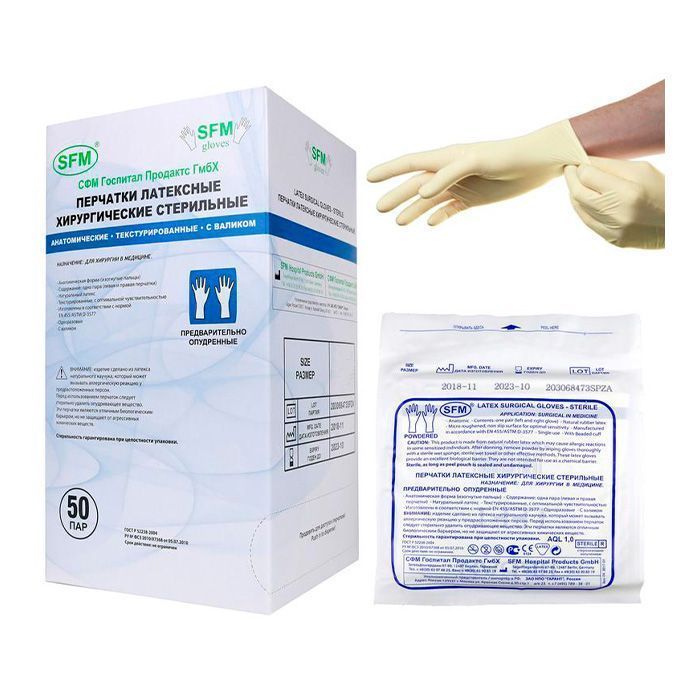 Перчатки хирургические СТЕРИЛЬНЫЕ, латексные, опудренные, текстурированные, SFM, размер 7,0