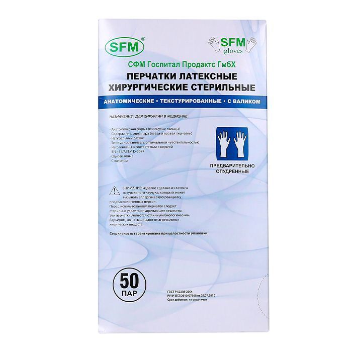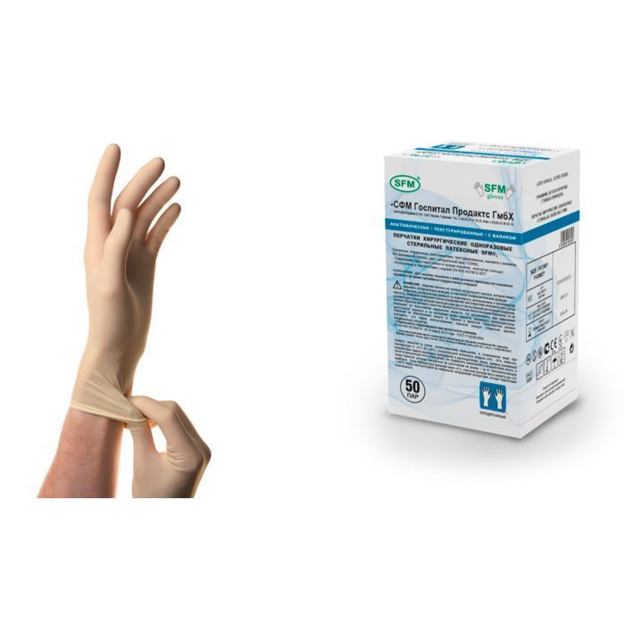 Перчатки хирургические СТЕРИЛЬНЫЕ, латексные, опудренные, текстурированные, SFM, размер 7,5