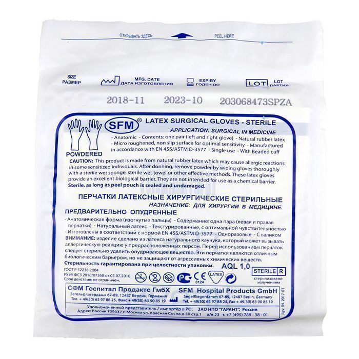 Перчатки хирургические СТЕРИЛЬНЫЕ, латексные, опудренные, текстурированные, SFM, размер 8,0