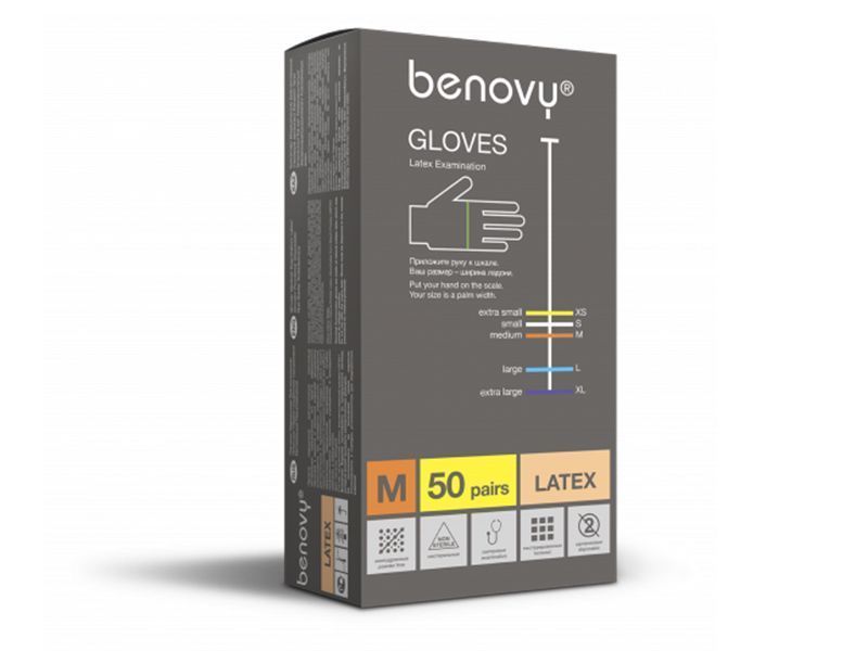 Перчатки латексные медицинские BENOVY, бежевые, размер XS, упаковка: 100 шт.