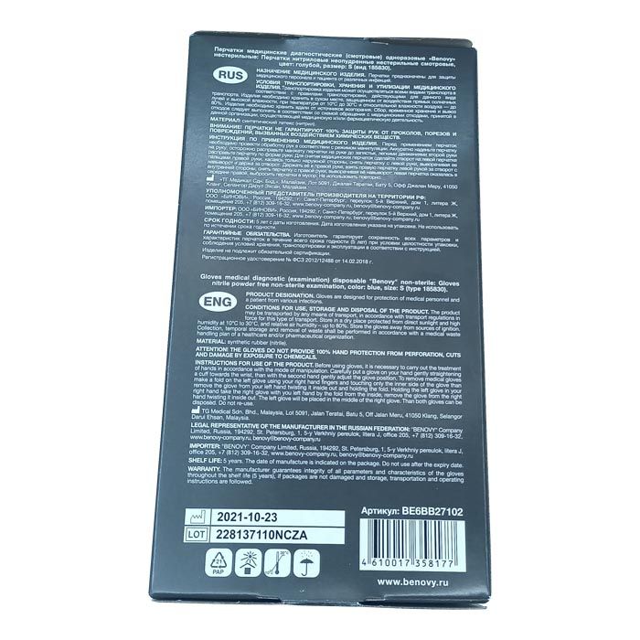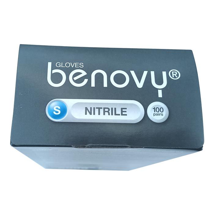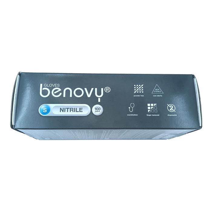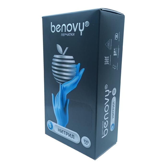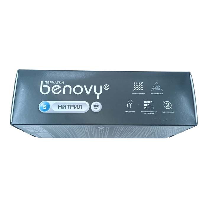Перчатки нитриловые BENOVY Nitrile, голубые, одноразовые, смотровые, размер S, упаковка: 100 пар