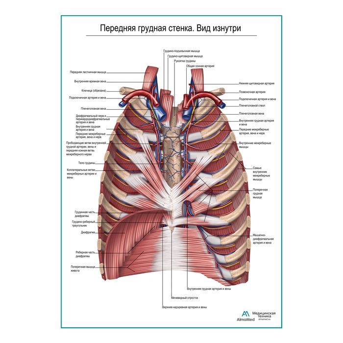 Передняя грудная стенка. Вид изнутри плакат глянцевый А1+/А2+