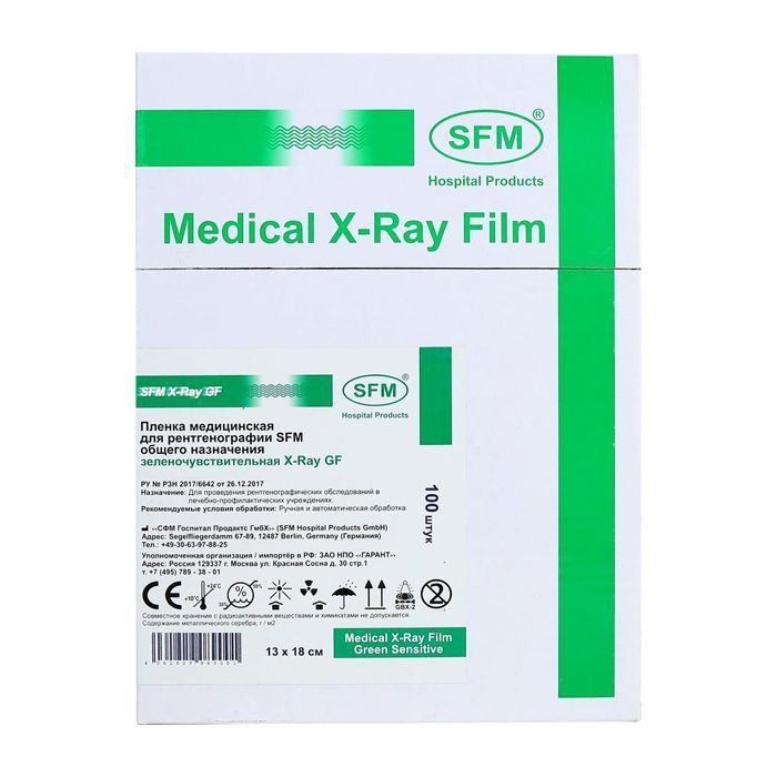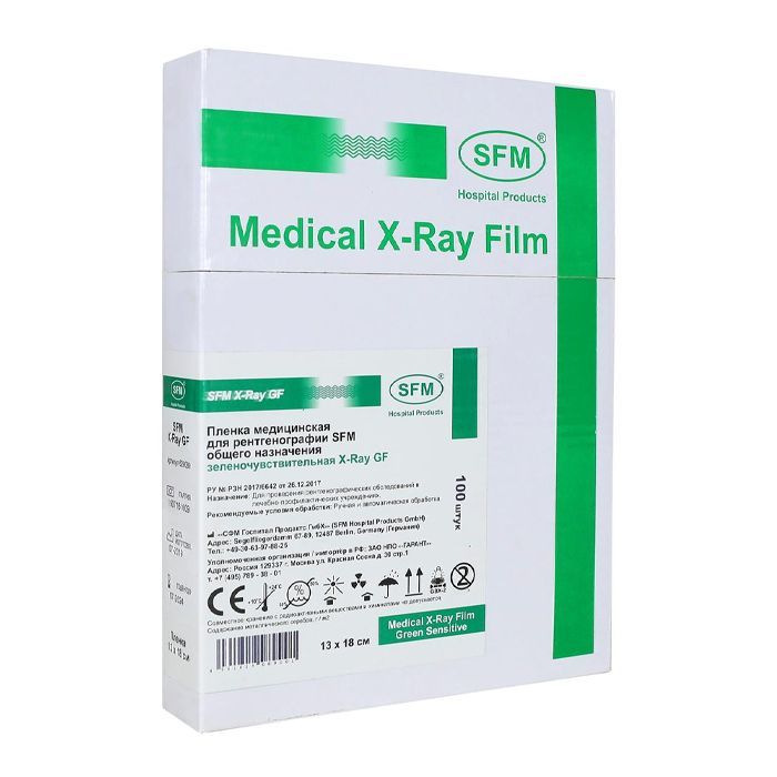 Пленка медицинская для рентгенографии SFM общего назначения зеленочувствительная X-Ray GF, 13 x 18 см (100 листов)
