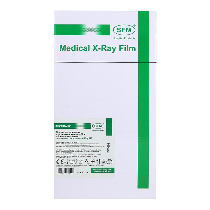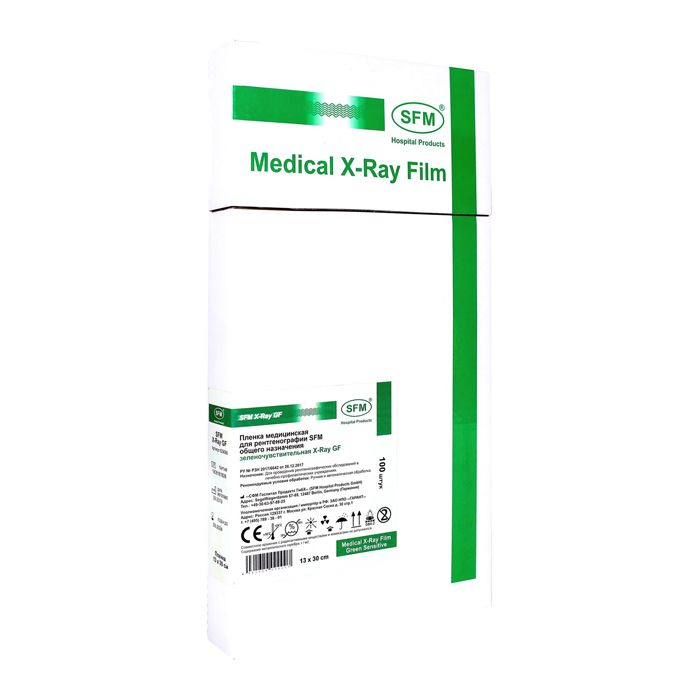 Пленка медицинская для рентгенографии SFM общего назначения зеленочувствительная X-Ray GF, 13 x 30 см (100 листов)
