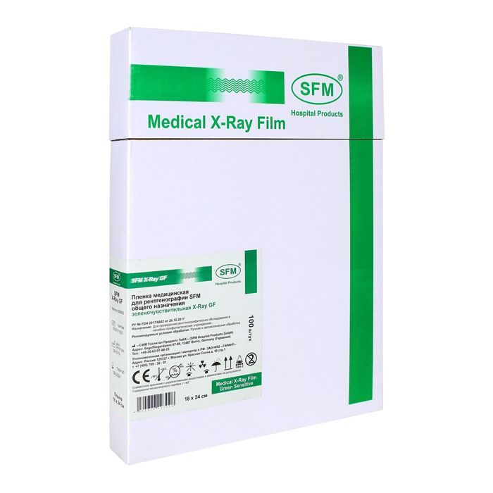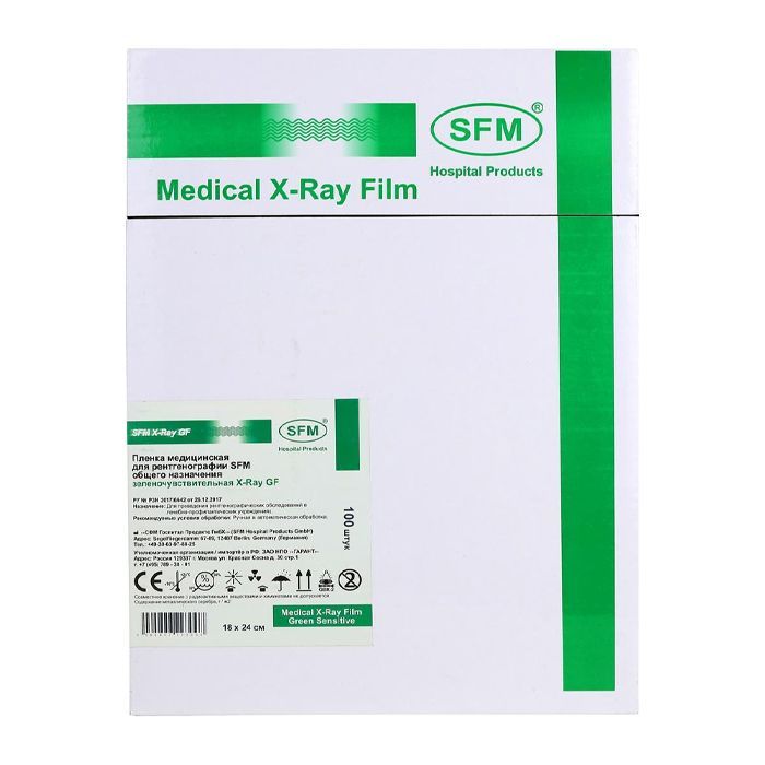 Пленка медицинская для рентгенографии SFM общего назначения зеленочувствительная X-Ray GF, 18 х 24 см (100 листов)