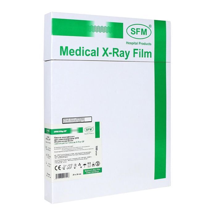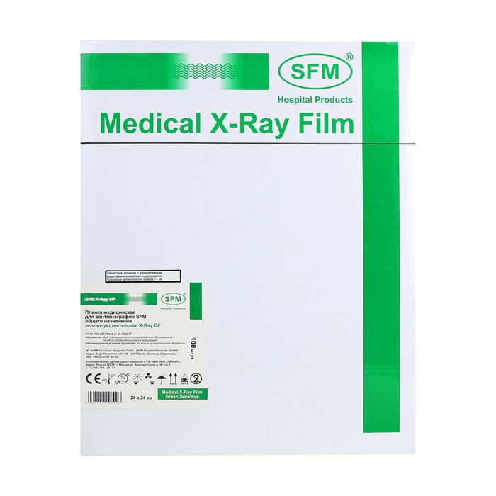Пленка медицинская для рентгенографии SFM общего назначения зеленочувствительная X-Ray GF, 24 х 24 см (100 листов)