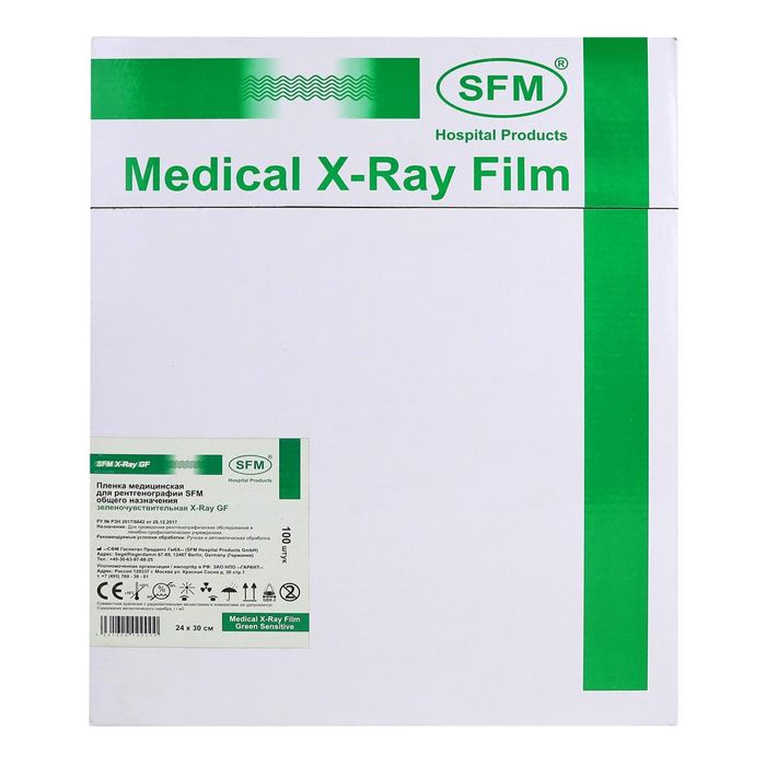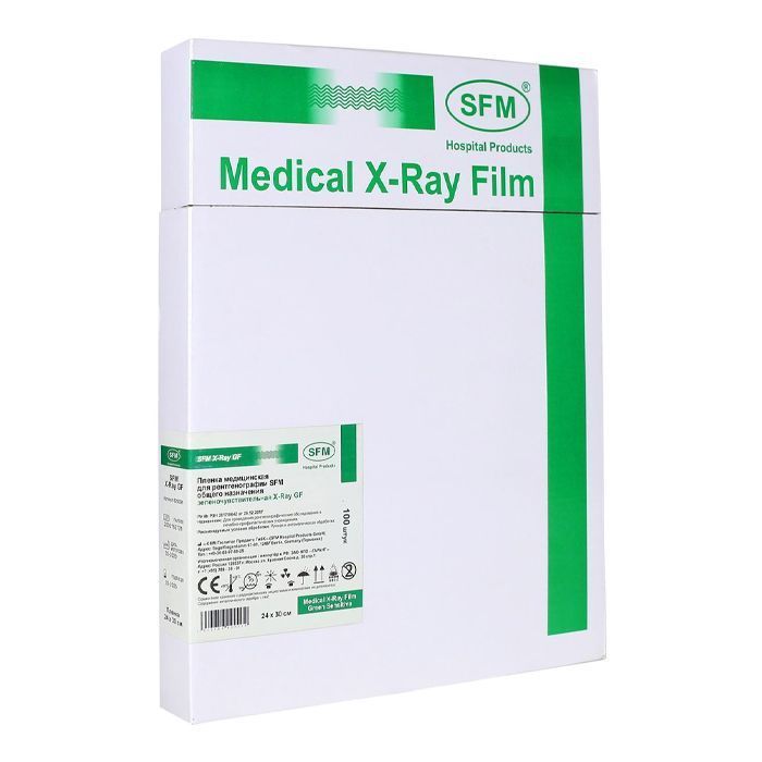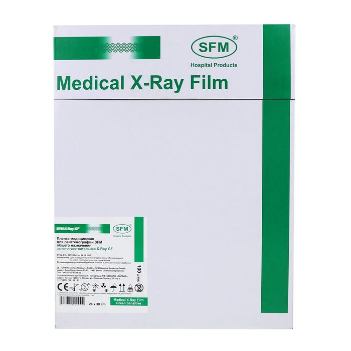 Пленка медицинская для рентгенографии SFM общего назначения зеленочувствительная X-Ray GF, 24 х 30 см (100 листов)