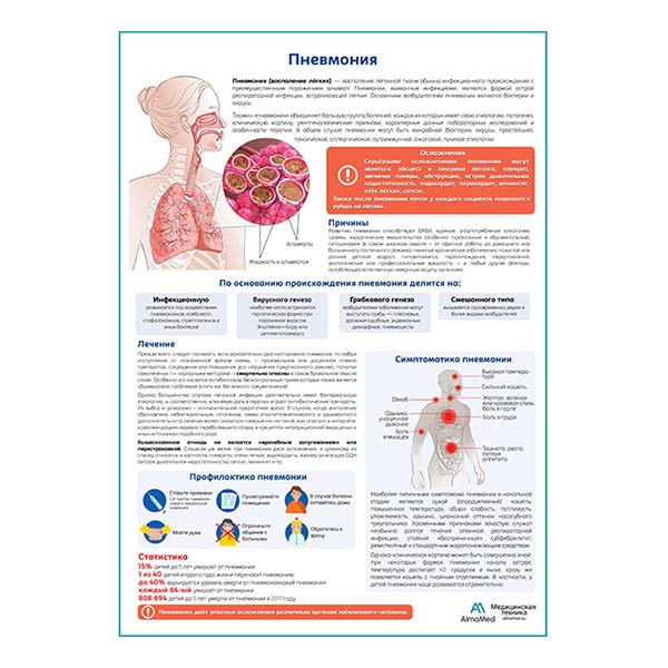 Пневмония медицинский плакат А1/A2