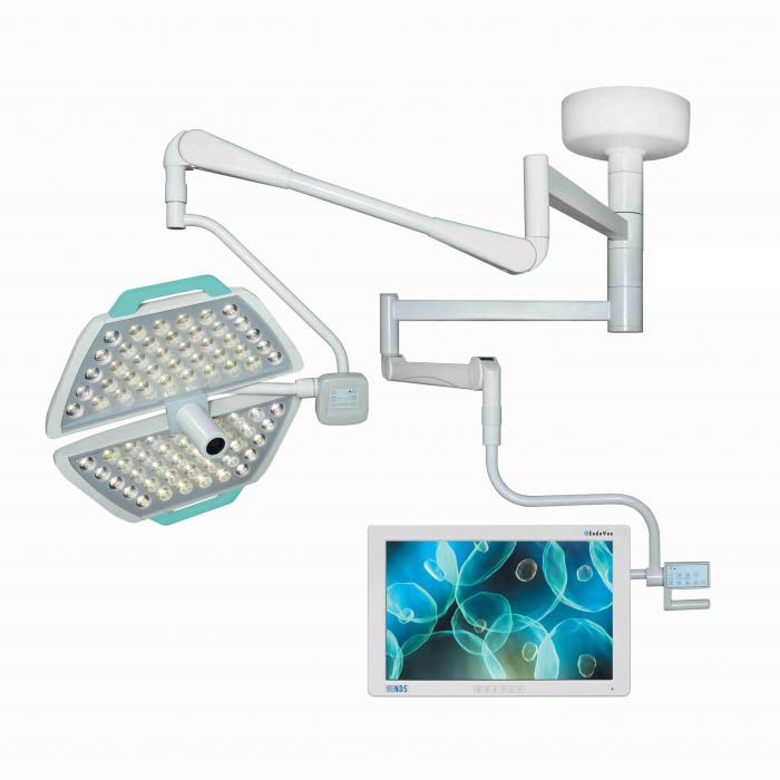 Потолочный одноблочный светодиодный операционный светильник Паналед-140 с видеокамерой HD и рычагом для монитора с кронштейном