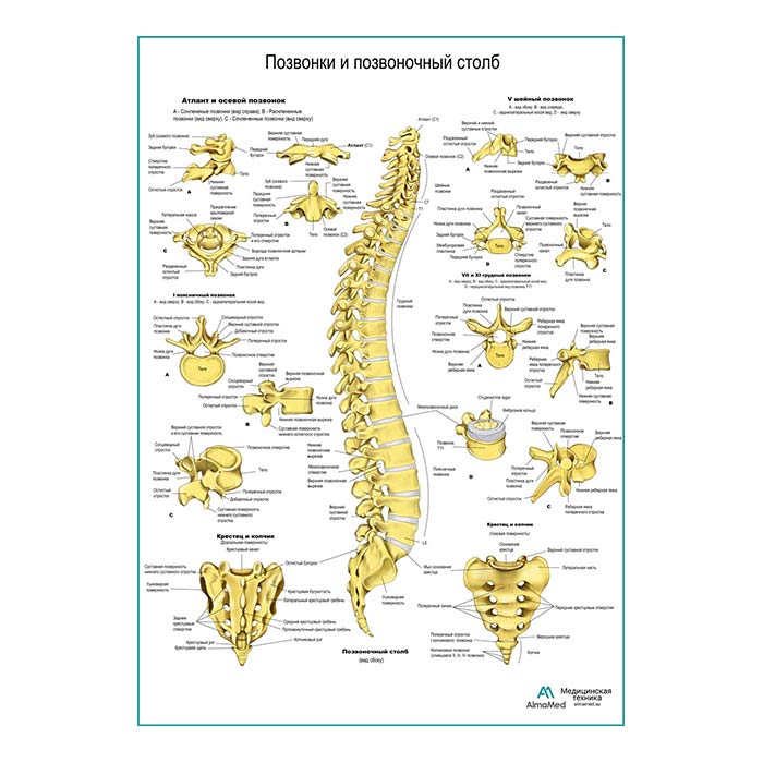 Позвонки и позвоночный столб, плакат глянцевый А1/А2