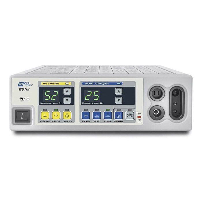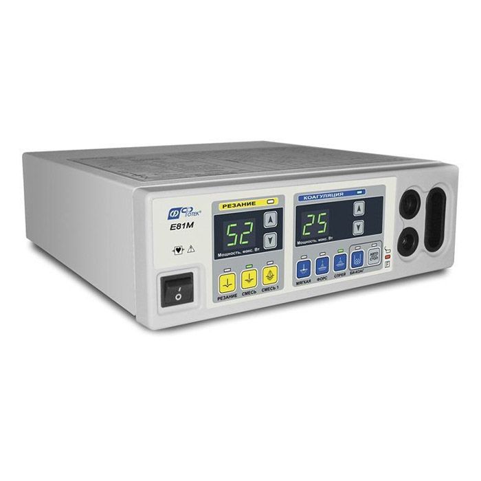 E81MB(7) ВЧ электрохирургический блок, 90 Вт; моно: РЕЗАНИЕ, СМЕСЬ, СМЕСЬ1, МЯГКАЯ, ФОРС, СПРЕЙ; биполяр: БИ-КОАГ, АВТО-СТОП, пуск с руки - 1шт;