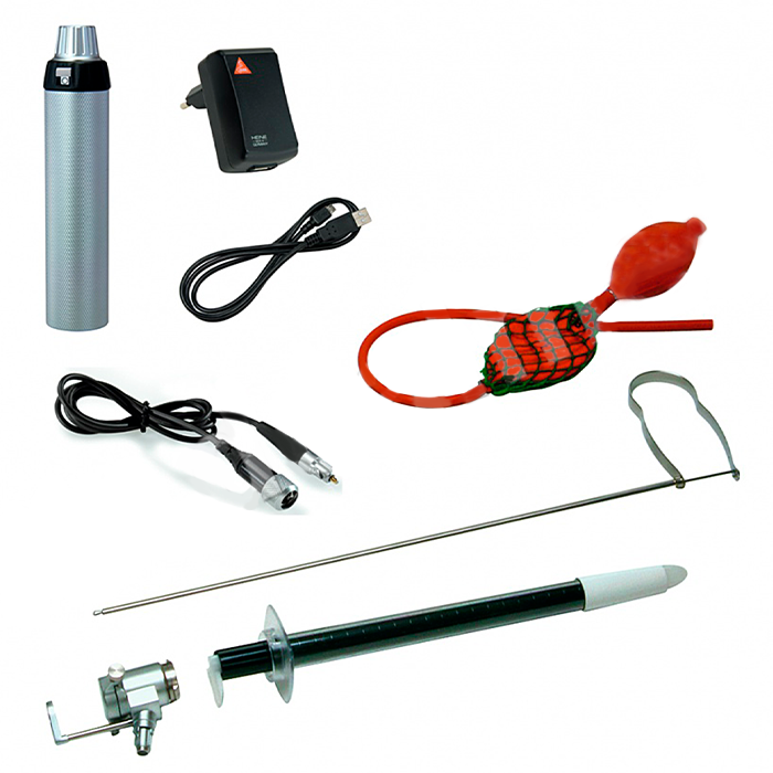 Комплектация набора: Туба прокто одноразовая HEINE UniSpec типоразмерами 85x20 мм — 25 шт.; Туба прокто одноразовая HEINE UniSpec типоразмерами 130x20 мм — 25 шт.; Туба прокто одноразовая HEINE UniSpec типоразмерами 250x20 мм — 25 шт.; Головка инструментальная HEINE — 1 шт.; Рукоятка перезаряжаемая BETA 4 USB - 1 шт.; Аккумулятор перезаряжаемый Li-ion L - 1 шт.; USB шнур - 1 шт.; Адаптер сетевой для рукоятки BETA 4 USB - 1 шт.; Щипцы захватывающие - 1 шт.; Груша инсуффляционная — 1 шт.; Фильтр гигиенический — 25 шт. * Комплектация приборов может изменяться заводом изготовителем, уточняйте у менеджера.
