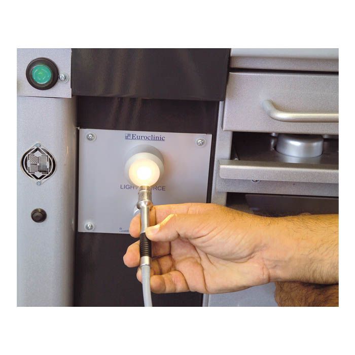 три встроенных светодиодных источника света со стандартными разъемами типа Storz. Интенсивность освещения регулируется как с сенсорного экрана, так и с помощью диммеров, расположенных над источниками света