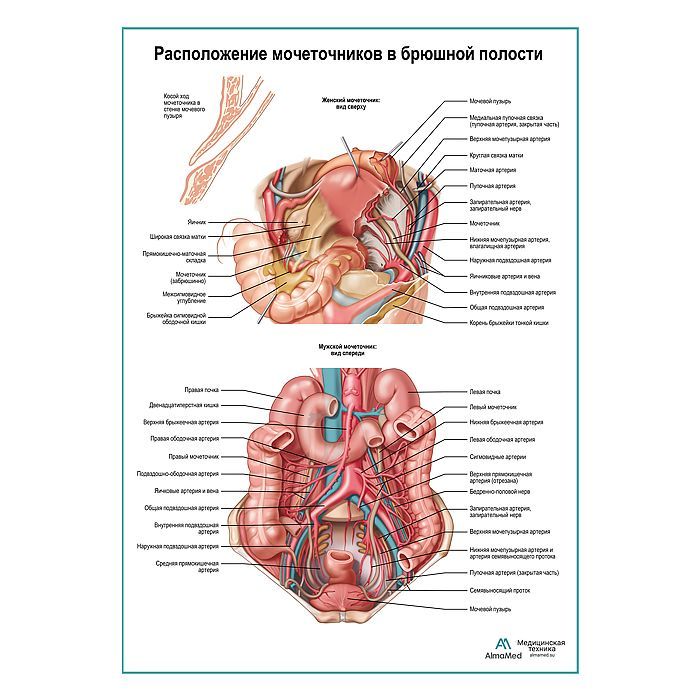 Расположение мочеточников в брюшной полости плакат глянцевый А1+/А2+