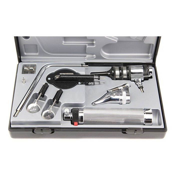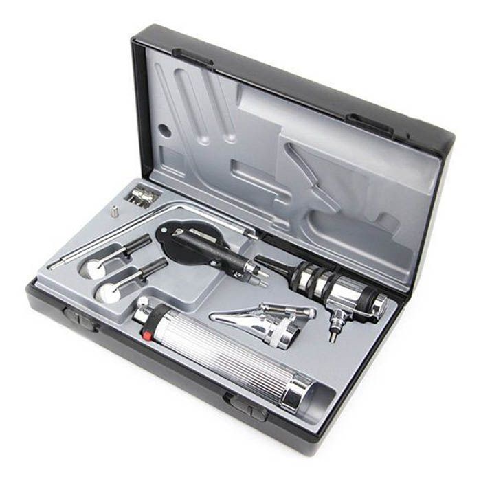 отоскоп uni, вакуумная лампа 2,7В (съемная поворотная линза увел. в 4 раза, 3 воронки многоразовые диам. 2, 3 и 4 мм;