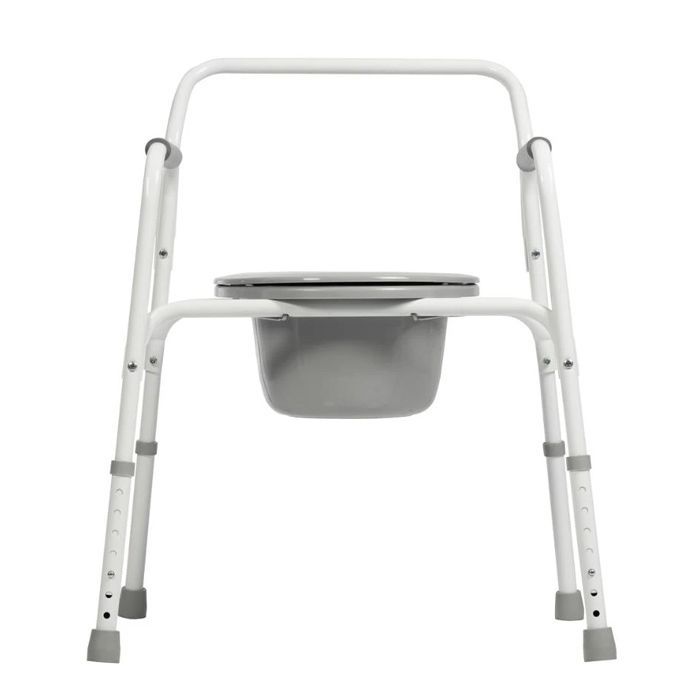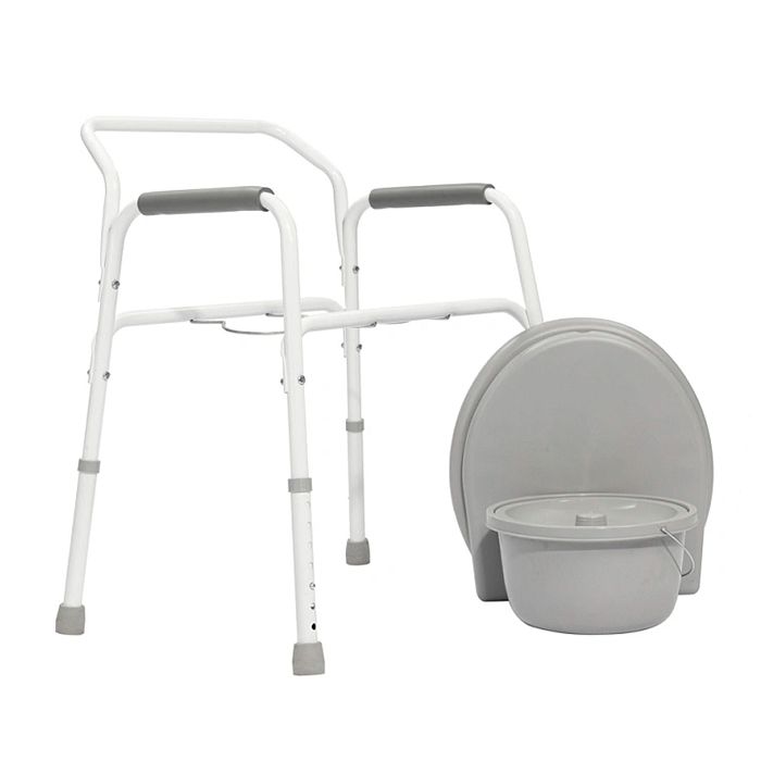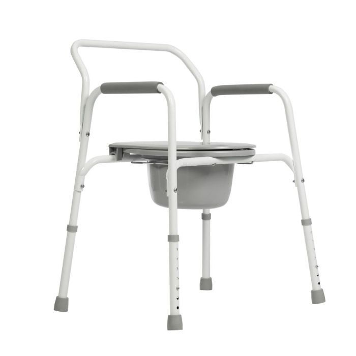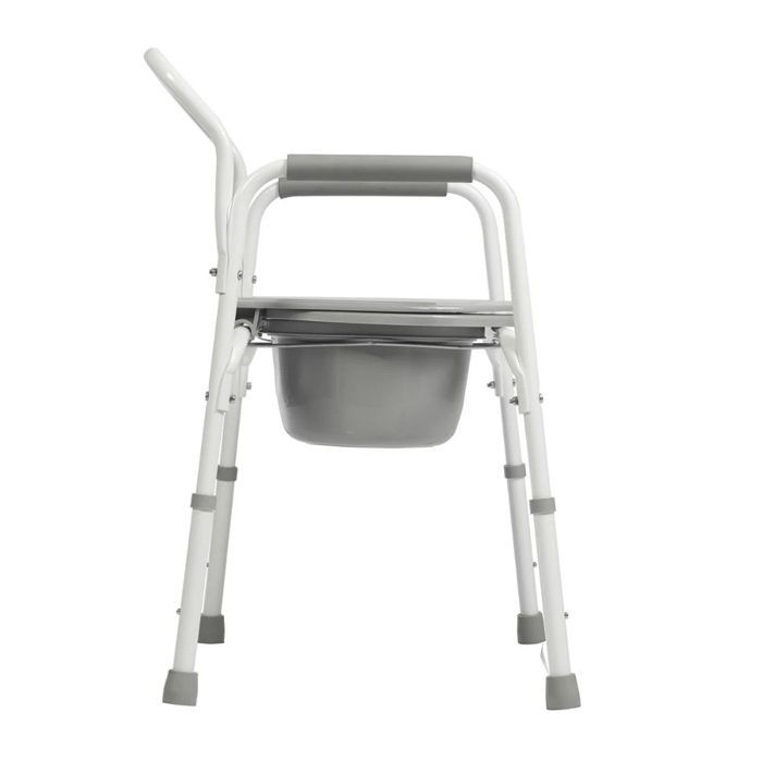 Максимальная нагрузка на стул для санитарного использования – 130 килограмм. Вес конструкции не затрудняет перемещение в помещении. Возможно использование совместно с унитазом за счет стульчака и судна, которые легко убираются и прикрепляются. Для комфорта больного высота сиденья регулируется. Высоту стула можно настроить под рост больного, используя регулируемые на семь положений ножки.