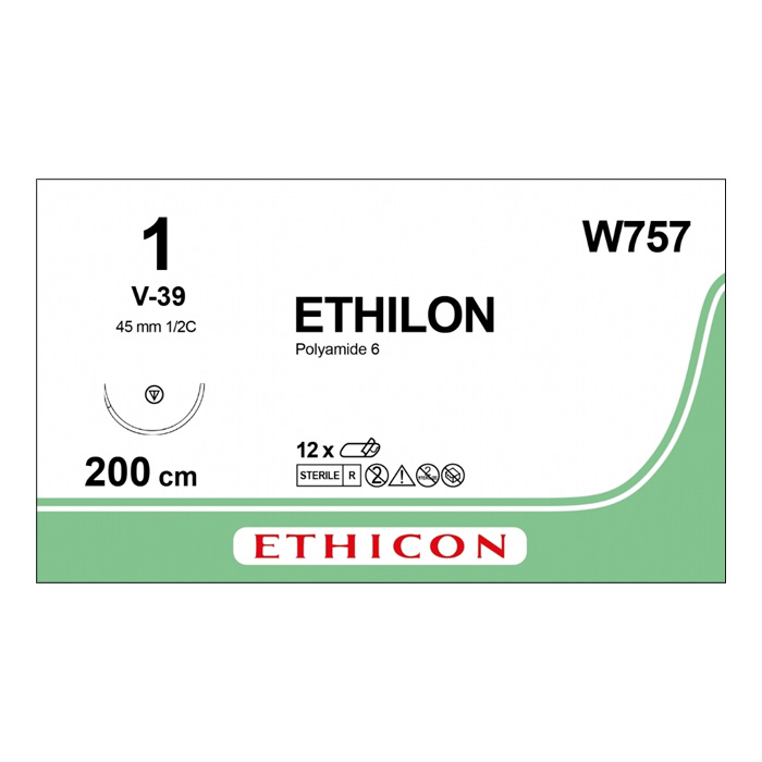 Шовный материал ЭТИЛОН 1. 200 см петля. черный Кол.-реж. масс. 45 мм. 1/2 Ethicon