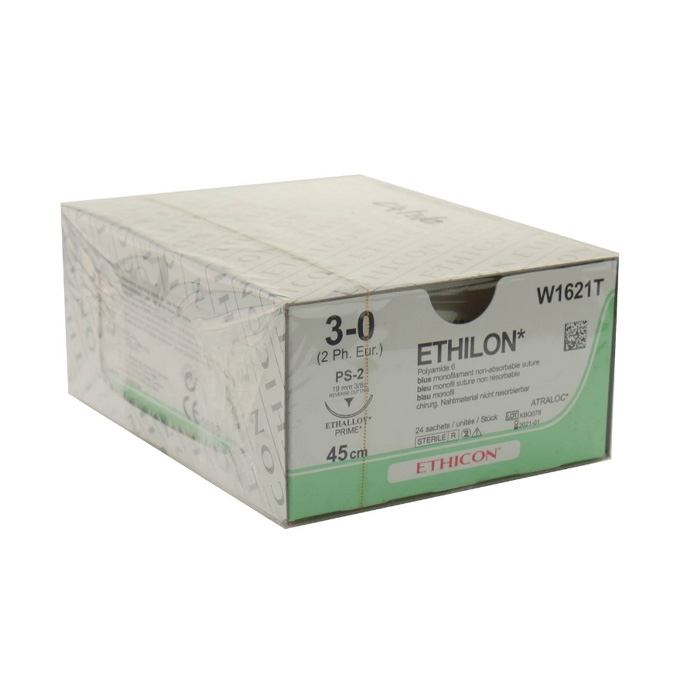 Шовный материал ЭТИЛОН 3/0. 45 см. синий Прайм обр.-реж. 19 мм. 3/8 Ethicon