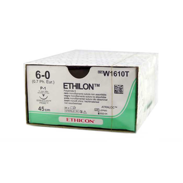 Шовный материал ЭТИЛОН 6/0. 45 см. черный Прайм обр.-реж. 11 мм. 3/8 Ethicon