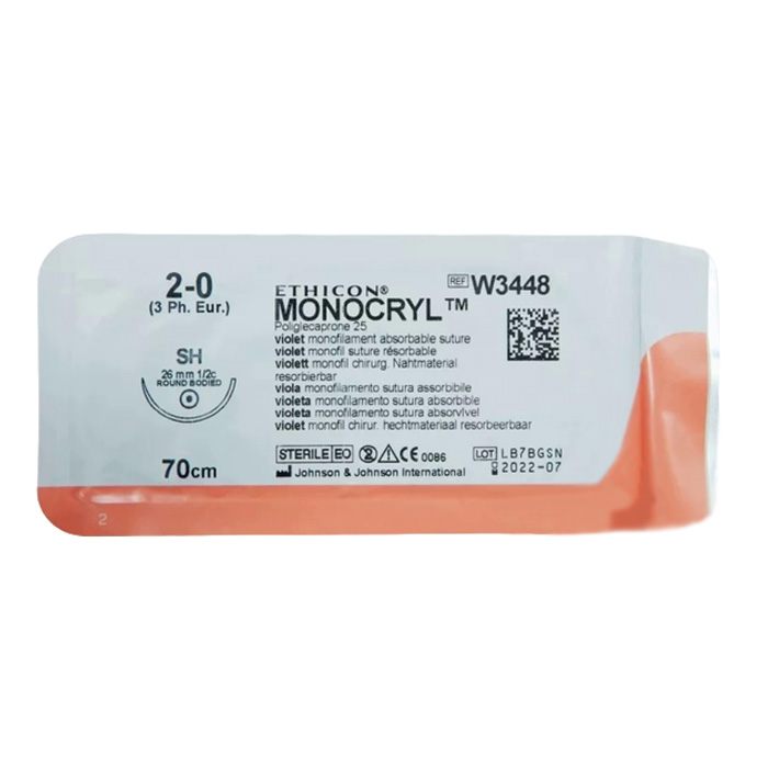 Шовный материал МОНОКРИЛ 2/0, 70 см, фиолетовый Кол. 26 мм, 1/2 Ethicon
