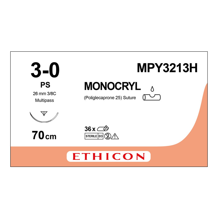 Шовный материал МОНОКРИЛ 3/0, 70 см, неокрашенный Прайм обр.-реж. 26 мм, 3/8 (PS PRIME MP ) Ethicon, 36 шт. в коробке
