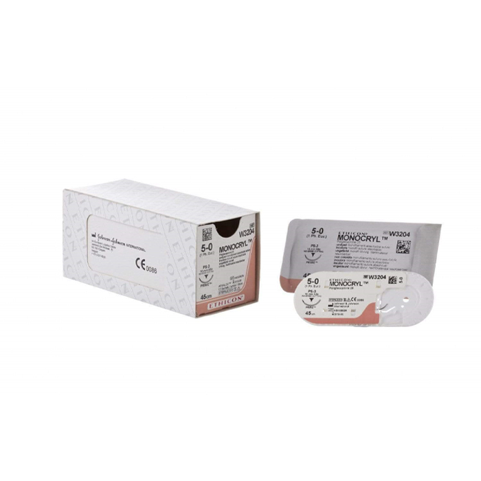 Шовный материал МОНОКРИЛ 5/0, 45 см, неокрашенный Прайм обр.-реж. 13 мм, 3/8 (P-3 PRIME MP) Ethicon, 36 шт. в коробке